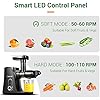 - 🍊[2 SPEEDS CONTROL & LED DISPLAY ]: Our cold press juicer has flexible 2 speeds control design to extract various fruits and vegetables (including leaf veggies). “SOFT” modes runs from 50 to 60 RPM for soft and juicy fruits and vegetables like watermelon, orange, grape, celery, cucumber. ”HARD” modes runs from 100 to 110 RPM for hard fruits like apple, pear, carrot, beets, ginger and kale. Plus an elegant LED display panel, which makes your juicing more convenient and stylish.