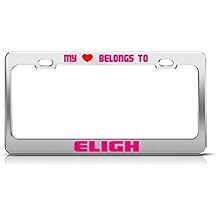 MY HEART BELONGS TO ELIGH Male Boy Names License Plate Frame Metal Chrome