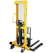 Vestil VHPS-2000-AA Manual Hydraulic Hand Pump Steel Stacker with Adjustable Forks, 2000 lb. Capacity, 60-1/4" Length x 52" Width x 81" Height, Yellow