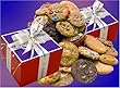 This is an assortment of carefully wrapped cookies. They claim to ship only hours after the baking is done, and the taste would certainly indicate that that's true. I'm not exactly sure how many different cookie types there are in the box since I (and my co-workers) started eating before I started counting. But somewhere around eight or more different types. The snickerdoodles were the best I've ever had. Ridiculously good cookies.