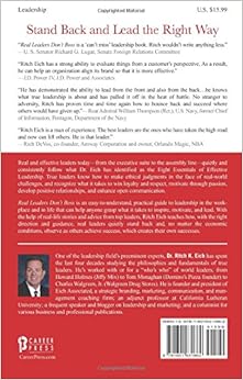 Ritch Eich's extensive experience with a number of prominent leaders from a wide variety of industries has given him valuable perspective that fortunately he is willing to share with all of us. His high ethical standards and intrinsic integrity has provided him with a prism to judge truly effective leadership styles. In today's cynical world, this is a much needed book. It is also very gratifying that proceeds from the sale of this book will be donated to not-for-profit organizations that are helping U.S. military men and women who were wounded in Iraq or Afghanistan. This is a must read.