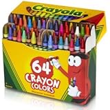 64 different colors spanning the spectrum Appropriate for kids 4+ Features a built in sharpener Flip-top box and tiered sleeves for easy access Makes a perfect gift With 64 unique colors and a built in sharpener this box provides hours of creative coloring fun Large color assortment appeals to older kids