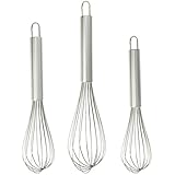 You could try to make one whisk fit all... or you could maximize your mixing range with this threesome of stainless-steel whisks. Try the largest whisk for big bowls of pancake batter, the midsize one for beating eggs, and the littlest for blending a small batch of vinaigrette. The flexible but sturdy stainless-steel ribs overlap with a little room in between for less clotting. And the professional-gauge handles, each sized accordingly, refuse to bend. --Emily Bedard