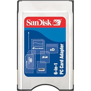 Sandisk 6 in 1 PC Card Adapter converts Secure Digital, MultiMedia, Memory Stick, Memory Stick Pro, SmartMedia and xD Picture card to PCMCIA (type II)