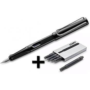 Lamy Safari Fountain Pen (19M) Black & 5 Black Ink Cartridges