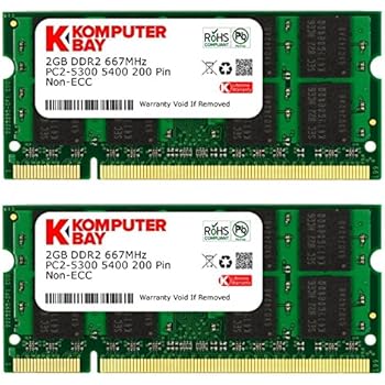 • Crucial 4GB Single DDR2 667MHz (PC2-5300) CL5 SODIMM 200-Pin Notebook Memory Module CT51264AC667