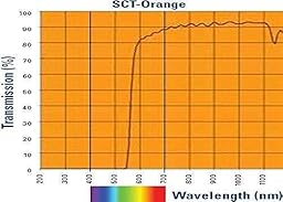 The SCT Orange lens tint blocks virtually all ultraviolet, violet, and blue light while allowing most of the longer wavelengths (from green to red) to pass through (see the spectral chart). This gives it a deep orange color. Unlike many other orange lenses, this is a true 'blue-blocking' lens tint.
