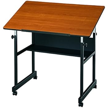 A sturdy, 4-post steel table that is perfect for art, hobby, crafts, graphic arts, and all kinds of creative work in the home, dorm, studio, or office. Built tough to provide years of service, the MiniMaster comes with a durable, rounded corner tabletop and an easy-to-adjust height mechanism with 1 inch increments. 38 LBs. 24 inches x 36 inches top with rounded corners. Height adjusts from 27 inches to 40 inches in the horizontal position. Board angle adjusts from 0 to 30. Includes 23 inches pencil ledge and built-in storage shelf 27 inches long x 8 1/2 inches deep. Casters and floor glides, both included. Base and tabletop packaged in one UPS-able carton. Five year limited warranty.