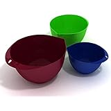 The OXO Good Grips Mixing Bowls are great for whisking eggs, mixing batter and making marinades. These 1-1/2, 3 and 5-quart Bowls feature soft, comfortable, non-slip handles that are easy to grip. Non-slip bottoms stabilize the Bowls while mixing, and wide lips and spouts make it easier to pour ingredients. The Bowls come in blue, green and yellow and nest neatly for convenient storage.
