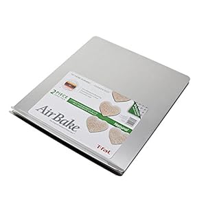 AirBake brand has always been "The Original Insulated Bakeware". AirBake continues to provide the best baking results every time. Made of 100-percent aluminum, AirBake Natural provides an overall enhanced baking performance with its insulated aluminum sheets and micro-dome technology to decrease bake times by up to 15% over traditional insulated bakeware. Two heavyweight aluminum sheets surround a layer of air. The air reduces the temperature of the metal that comes in contact with the food. The bottom sheet blocks the direct oven heat while the layer of air acts as an insulator preventing the top sheet from overheating. This means better browning, no burning, and moister baked goods. Set includes 2 cookies sheets 16-inches x 14-inches and comes with a recipe book. CARE INSTRUCTIONS: Before using your bakeware for the first time, wash and condition the bakeware by spreading one teaspoon of cooking oil over the interior with a clean cloth. Wipe off any excess. Avoid overheating your bakeware. In order to preserve and avoid scratches on your coating, we recommend the use of plastic utensils. Slight surface marks or abrasions are normal and will not affect the performance of the non-stick coating. With use, the non-stick surface may become slightly darker. This will not impair its performance. AirBake is designed to breathe and is not watertight. However, AirBake is dishwasher safe. DO NOT USE DISHWASHER DETERGENT TABS - the concentrated cleaning agents will damage the bakeware's finish. DO NOT SOAK - if water is inside pan layer, there is a risk of burning from steam release. If your pan has water inside the two sheets, place the pan upside down in a 250-degree oven for 30 minutes or until water is removed.