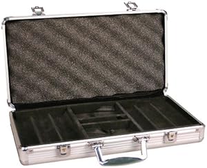 Carry your chips in style with this aluminum frame poker chip carry case. It has space for poker chips, 2 decks of playing cards, and dice (not included.)