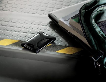 - Stylish - Compact black design with included black Iomega Power Grip band slips easily into a backpack or briefacse