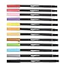 Dual Brush Pen Sets Whether you are drawing, animating, drafting or crafting, Tombow Dual Brush Pens are the perfect choice. A complete palette of 96 colors are available plus a wide variety of six or ten pack color sets. Each pen set includes a themed assortment of colors and a colorless blender pen. The water-based ink is blendable and acid-free. The markers feature a resilient nylon brush that retains its sharp point, stroke after stroke. The high quality pens can be relied on for long lasting ink flow. The possibilities for your next project are endless. Use the brush tip and fine tip to create beautiful projects. View larger The versatility of the Dual Brush Pens inspires creativity. View larger Dual Brush Pens are Two Pens in One Dual Brush Pens feature a marker with a flexible, nylon brush tip and a fine tip all in one. The brush tip works like a paint brush to create fine, medium or broad strokes by a change in brush pressure. The fine tip draws consistent, smooth lines for borders, graphics and tight drawings. Use the fine tip to add sharp details with no fraying at the tip. Both the brush and fine tips can be used to palette blend the colors. Simply apply a darker color using the brush tip to a plastic sheet. Take a lighter color pen and dip the brush tip into the darker color. With each stroke, the pen creates a two color effect with dark to light hues. Create special effects with the Colorless Blender Pen Each set offers a colorless blender pen to add beautiful effects to any art project. The blender pen can be used to soften and blend the colors creating a watercolor effect. When shading with the colorless blender, Dual Brush Pens can create an endless number of color combinations. These markers are ideal for both artists and crafters. The quality pen design ensures long lasting ink Dual brush pens can be stored both horizontally and vertically. The ink is pressurized within the pen body making it flow smoothly from either tip no matter which position the pens are stored. Both tips are fed from the same ink reservoir ensuring an exact color match. The high quality ink is long lasting and can be stored at temperatures as low as-40-Degree F or as high as 140-Degree F and produce the same results. Dual Brush Pens are available in 96 colors. View larger With Dual Brush Pens, the perfect color is at your fingertips Tombow Dual Brush Pens are 7 3/4-Inch long (20cm) with color coded caps for quick selection. The brush nib and hard nib are at opposite ends and "anti-roll design" of the pen barrel is perfect for busy artists. Dual Brush Pen Features: Each pen features two tips, a brush tip and a fine tip Brush tips self clean after blending Water-based Blendable Non-toxic, acid-free, odorless Ideal for fine art illustrators, field sketching, art journaling, lettering techniques and more.