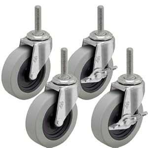 Wire Rack and Small Cart 3" Caster Kit - 4 Pack - 3/8" x 1-1/2" Threaded Stem
