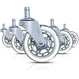 I looked at casters for a long time on Amazon because I wanted a 75% firm/25% rubbery wheel that had a really smooth swivel action so it so the rubberiness would grab the carpet and the swivel would allow the desk to change directions easily with a nice smooth glide.