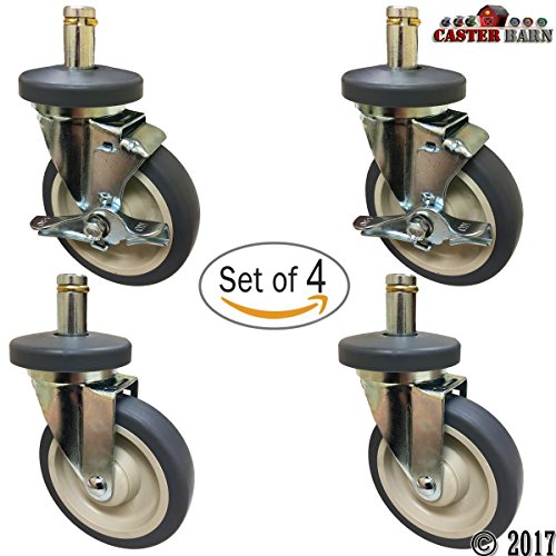 Wire Rack and Small Cart 3" Caster Kit - 4 Pack - 3/8" x 1-1/2" Threaded Stem