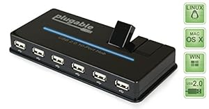 Featuring a simple yet flexible design, the Plugable 10 Port USB 2.0 Hub provides easy expansion for any USB capable system. All upstream and downstream ports are on the front and back sides of the hub, with two rear ports minimizing desktop cable clutter. Two ports swivel to a vertical position to allow easy insertion with one hand. Featuring a robust 12.5W AC adapter to power all of your devices including power-hungry USB-powered hard drives, scanners, etc.