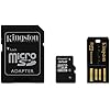 This all-in-one media kit combines a single card with SD adapter and a USB card reader to give mobile users the compatible storage they need for all SD and USB-compatible devices, including mobile phones, digital cameras, notebooks, tablets, e-readers, media players and more. The kit includes one adapter with the microSD or microSDHC card as the centerpiece, and a USB card reader, giving users the most versatile mobile gear. The card seamlessly converts to a Secure Digital (SD) or USB format that can be used across devices to easily move photos, music, videos or data to your camera, mobile phone or computer. The kits are available with a stylish USB microSD card reader and either a 2GB microSD or 4GB, 8GB, 16GB or 32GB microSDHC card. The included keychain lets you hang the reader from your phone so you'll always have it handy when you're on the go. The kits are backed by a two-year warranty on the reader, a lifetime warranty on the microSD or microSDHC card, and legendary Kingston reliability, service and support. Store your entire mobile life - photos, songs, text messages, video clips and personal information on your microSD or microSDHC card, then work with it across device platforms seamlessly with the versatile Kingston Multi-Kit/Mobility Kit at your fingertips. To ensure compatibility, look for the microSDHC logo on host devices (e.g., phones, PDAs and cameras).