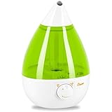 The Crane Drop Shape Cool Mist Humidifier runs up to 24 hours and puts out up to 2.3 gallons of moisture to soothe cold, cough, and flu symptoms. A 360-degree nozzle lets you direct the cool mist, while a variable output control located on the front of the unit makes for easy operation. This humidifier is energy-efficient, using less power than a standard light bulb to run.