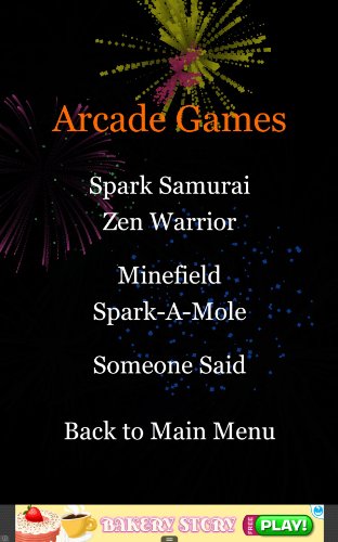 In the firework arcade it works the same, except there isn't a ball to bounce or jacks to pick up. You touch the fireworks as fast as you can, before they disappear, during a timed game. There are many levels, but all of the games are basically the same. It gets boring fast. I think that one of them might show you the moves you make at the end of the round, but that's pretty much it.