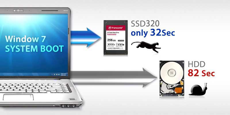 Transcend’s SSD320 optimizes your PC to reach top speeds and reduces system response time. Reboot your PC in just 32 seconds, reducing wait times by 60%. In comparison, to boot Windows 7 from a conventional hard drives takes about 82 seconds. When using the SSD320, files and programs, even memory-intensive applications like graphics programs, open in merely a few seconds.