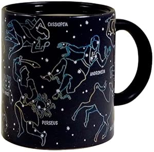 • 11 STAR CONSTELLATIONS APPEAR - Includes: Cassiopea, Perseus, Saggitarius, Hercules, Andromeda, Scorpius, Taurus, Ursa Major (Big Dipper), Ursa Minor (Little Dipper), Orion, Castor & Pollux. Star gazing and latte drinking don't have to be separate things any longer. Like having a star map pasted over a unique mug, you can use this while staring up at the starry night, or reading your horoscope with your morning cup of tea. This novelty mug is sure to please.