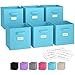 Royexe - Storage Cubes - (Set Of 6) Storage Baskets | Features Dual Handles & Label Window with 10 Label Cards | Cube Storage Bins | Foldable Fabric Closet Shelf Organizer (Blue)