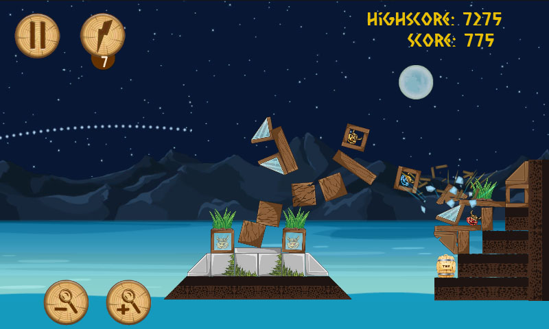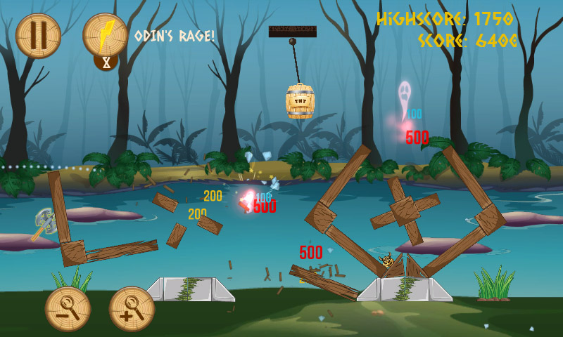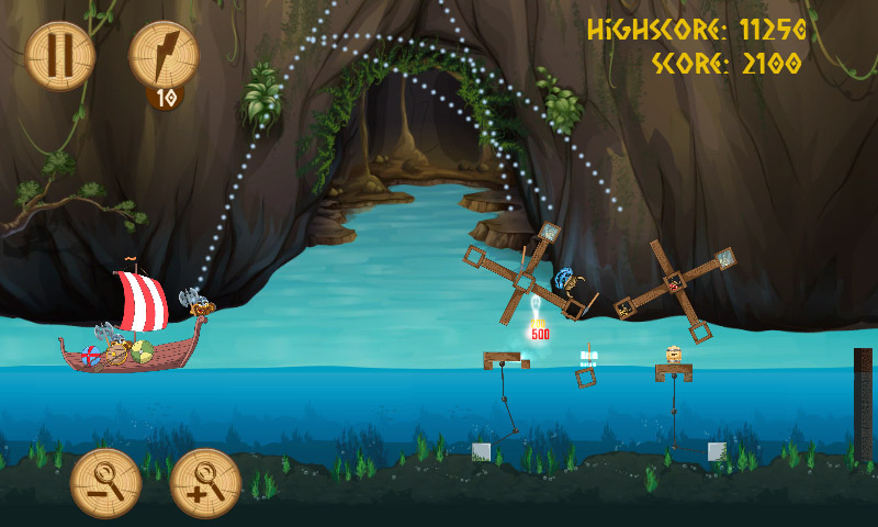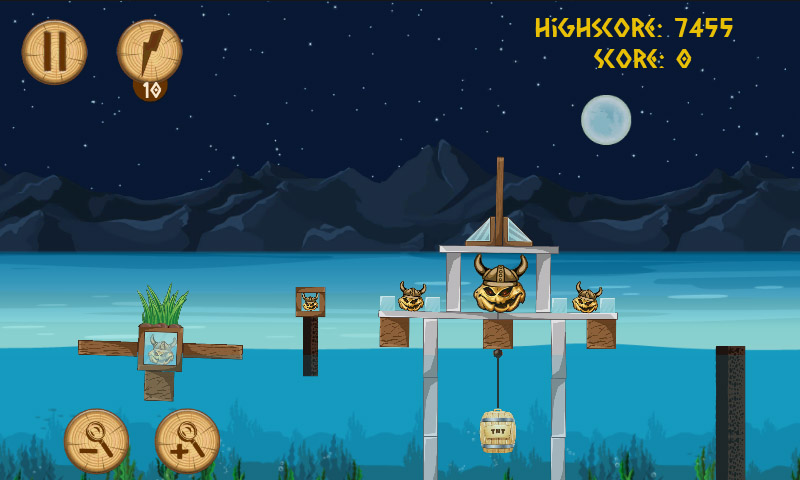 FEATURES - 30 exciting Levels! 3 themes in 2 Acts - Four different weapons to battle with, unique abilities, power-ups - Odin's RAGE power! tap the RAGE and throw any weapon once - Beautiful animated graphics - Several ambient themes and cute sounds - Realistic physics, realistic floating in Water physics, Rope physics, TNT explosions - Interactive enemy vehicles dynamics, rotors, warships - Zoom in/Zoom out support - FREE Updates: this is just a beginning of 5 Vikings adventure