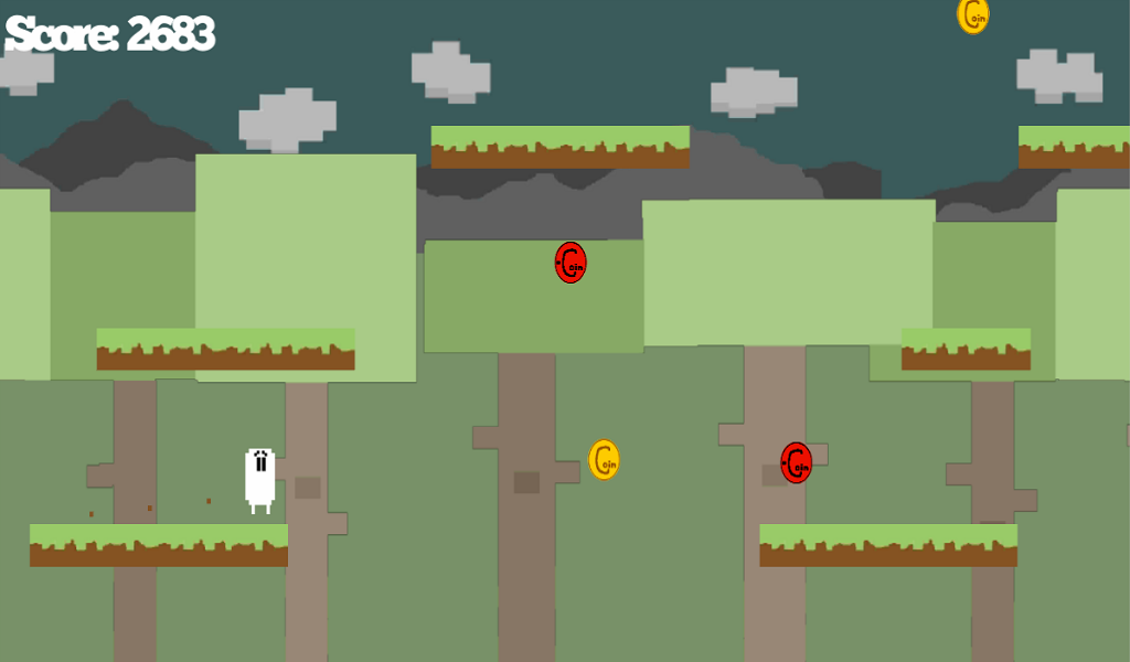JJ really, really likes to jump. He also really, really likes to run. Help JJ run as far as he can by tapping your screen to jump and double-tap to double-jump. Collect the gold coins to get bonus points, but don't get the red coins, they will take points away!