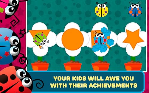 BabyUp: Beetles - set of early development games for your kids. Merry Beetles of different colors will help your child to learn colors, shapes and numbers. 15 mini games for children under age 6.