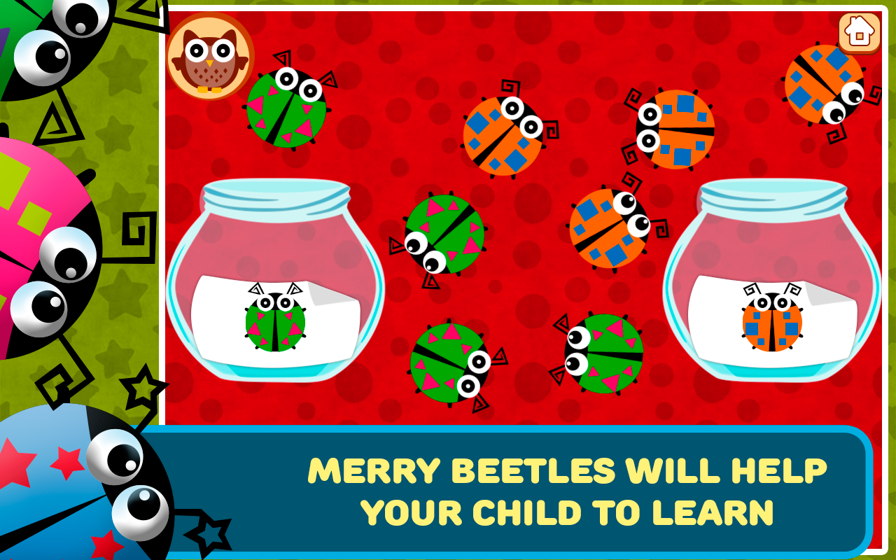 Let the Merry Beetles get your children acquainted with the world of numbers, shapes and colors. Your kids will awe you with their achievements. Learn through play!
