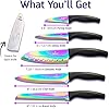 Titanium Coated Rainbow Knife Set - Sharp Stainless Steel Knives Set with Kitchen Utility Knife, Santoku, Bread, Chef, & Paring Knives with Covers - Iridescent Kitchen Accessories