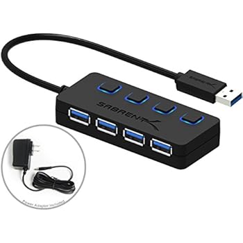 This item: Sabrent 4-Port USB 3.0 Hub with Individual Power Switches and LEDs included 5V/2.5A power adapter (HB-UMP3)