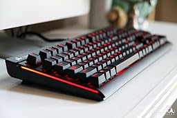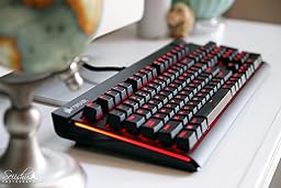 • Dynamic backlighting - Brilliant Red LED backlighting with cherry MX Blue enhances the experience with virtually unlimited lighting adjustability