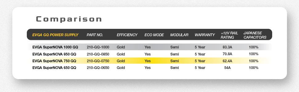 This item EVGA 750 GQ, 80+ GOLD 750W, Semi Modular, EVGA ECO Mode, 5 Year Warranty, Power Supply 210-GQ-0750-V1