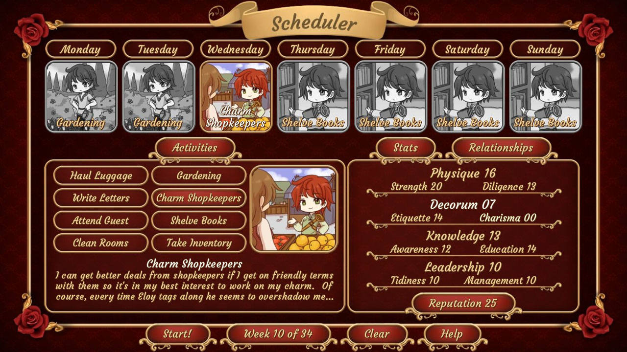Play as Marcel and determine whether or not he has the skills to become Lord Sandor's heir and whether or not he forms a romantic attachment to one of four potential love interests: an ex-gladiator turned gardener, a perfectionist butler, the local doctor, or a mischievous elven Lord.