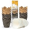 Resinta 150 Pieces Tulip Baking Cupcake Cups, Muffin Baking Liners Holders,Rustic Cupcake Wrapper, Brown, Natural and White