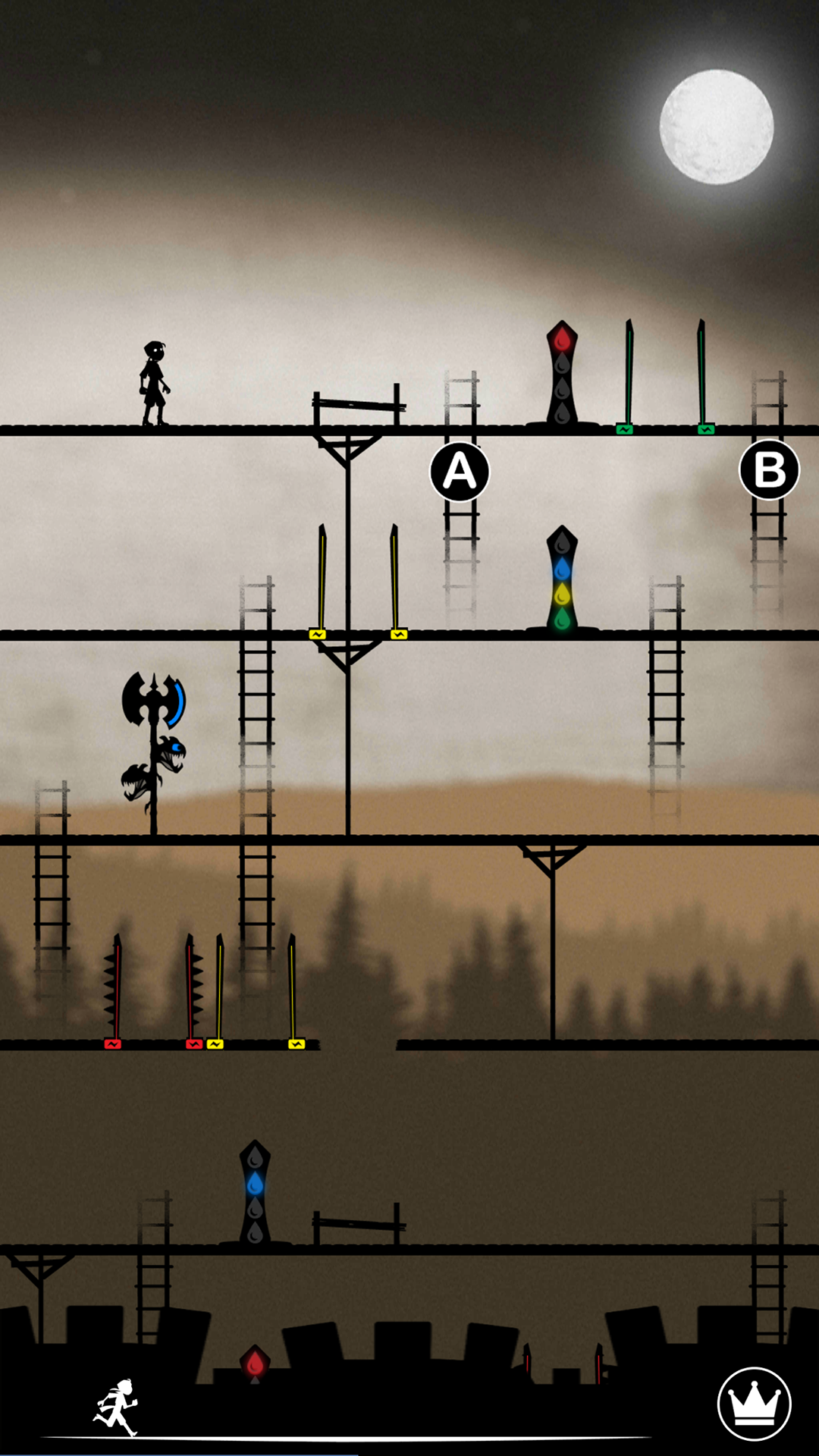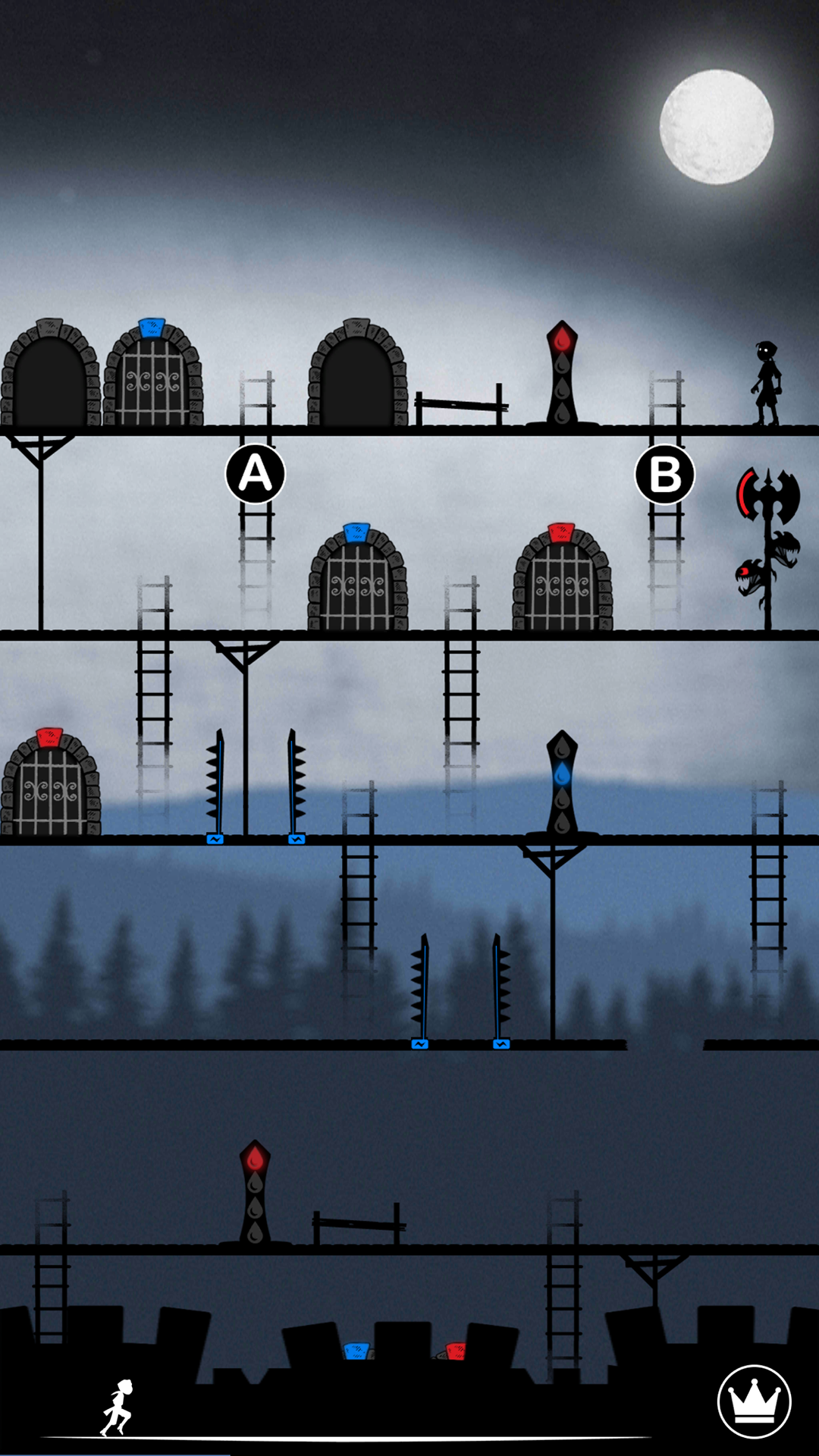 «Vive le Roi 3» is a puzzle and anticipation game, without chance or timing, based on mini puzzles to be solved by choosing the right ladder on each floor to reach the king and save him from his executioner.