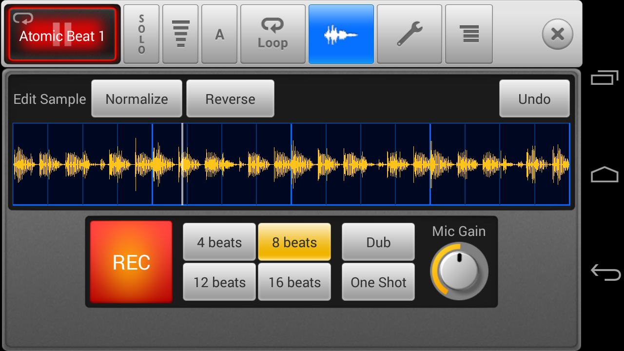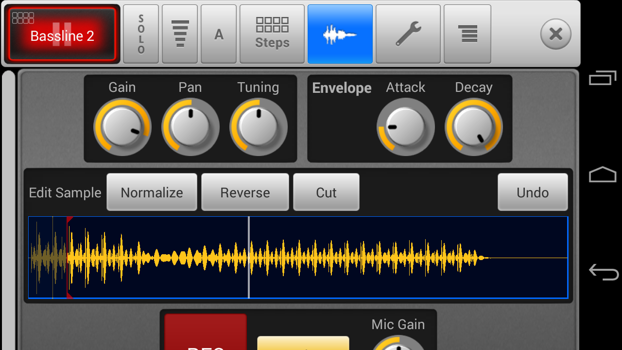 Edit your sounds - Waveform display - Gain, pan and tuning knobs - Envelope control with attack and decay - Reverse, normalize and cut function - Up to 16 steps volume and pan envelope for loops - Slicer for recombining loop elements - All actions in real-time