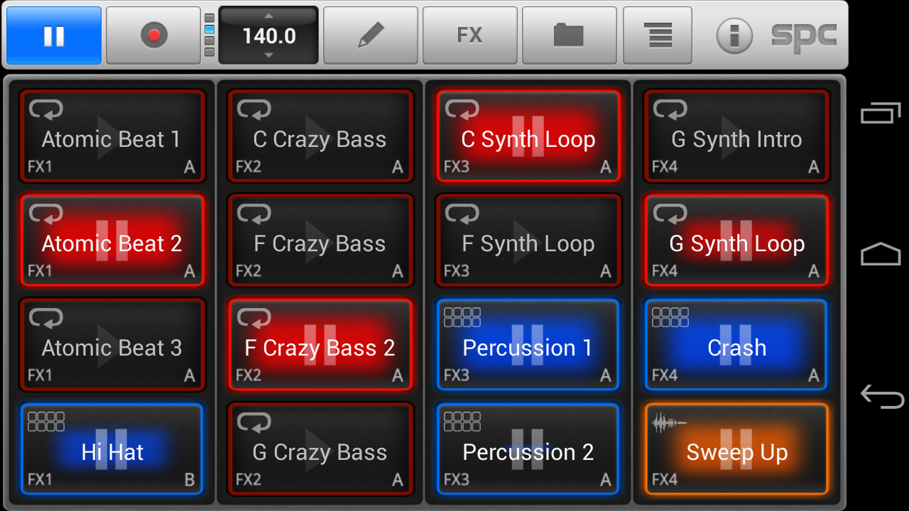 It's probably my mid-range phone, but the app is very laggy for me, there's a significant (~1 sec or so) amount of latency between tapping a button and the activation of whatever effect the button causes. And when there are more than a couple tracks going at once, things can get dicey - some samples will get out of time, or the whole project will stutter.