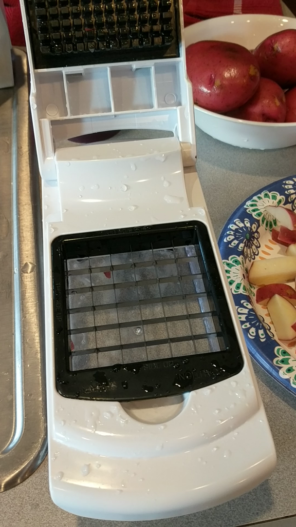 The second slice of onion then BENDS one of the rows of blades, so now that tool is completely useless.