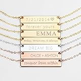 Dainty Vertical Hand Stamped Name Gold Bar Necklace Personalized Gift for Women Bridesmaid Jewelry Mother's Day Gifts for Her - 13N