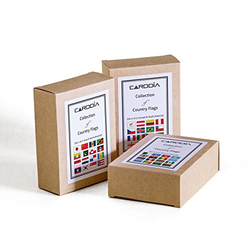 These cards are about the thickness and durability of playing cards but a bit smaller. We're trying to master the category of world flags and capitols for a trivia league we play in and despite trying 6-8 different iPhone apps found we needed good old fashioned flash cards. These do the trick and it's really helpful to have them sorted by continent for learning in easy to manage groups.(4) -
