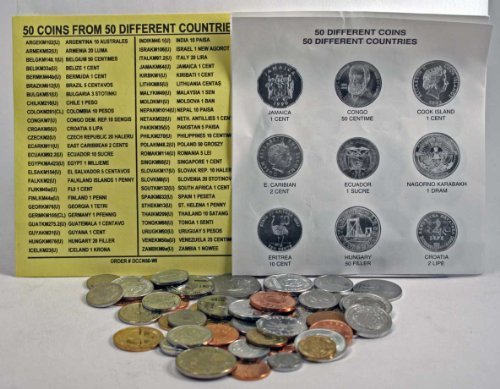 Really cool bunch of world coins. Maybe a few duplicates but who cares. Each coin looked to be in mint condition and the bunch came with a list that identified where each coin came from. Very fun and very satisfied,(31) -
