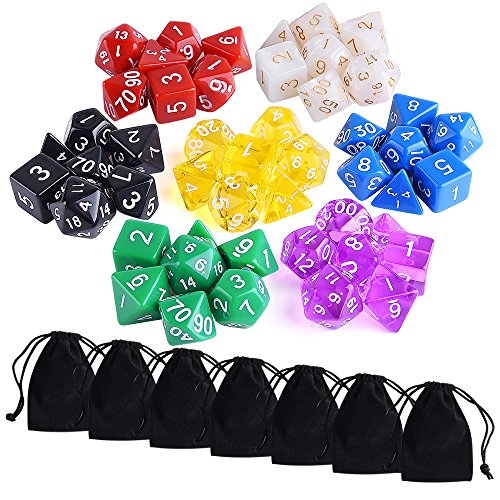 These dice are definitely worth the price. Each set has a marbling effect which makes them look amazing. The d4 does feel a tad smaller than I am used to, but roll just as well as any other d4 I have used. My set came with sets of red, blue, green, black and white. The 6 and 9 numbers are clearly differentiated with a period at their bases.