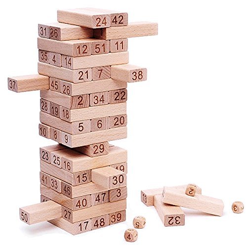 This game is fun and creative for all ages. The combination of dexterity and numbers is challenging. Loved throwing the four dice and then use the numbers to choose which piece to remove.(92) -