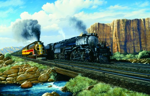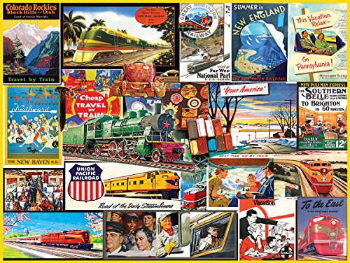 I really enjoyed working on this vintage train poster puzzle. There's not so much writing or logos, but the bright colors are a big help in getting sections assembled. I would say this was a medium challenge, but not frustrating in any way. Train travel looks great in this collage, a long by-gone era now.